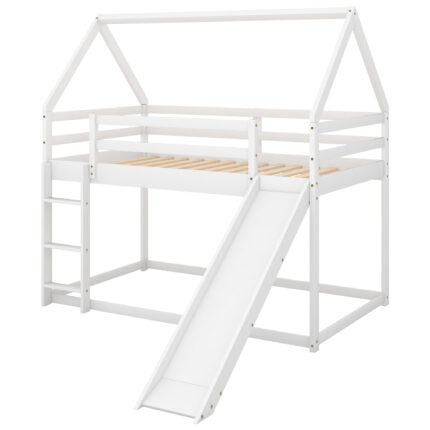 Twin Size Bunk House Bed with Slide and Ladder White