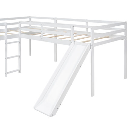 L-Shaped Twin Size Loft Bed with Ladder and Slide, White