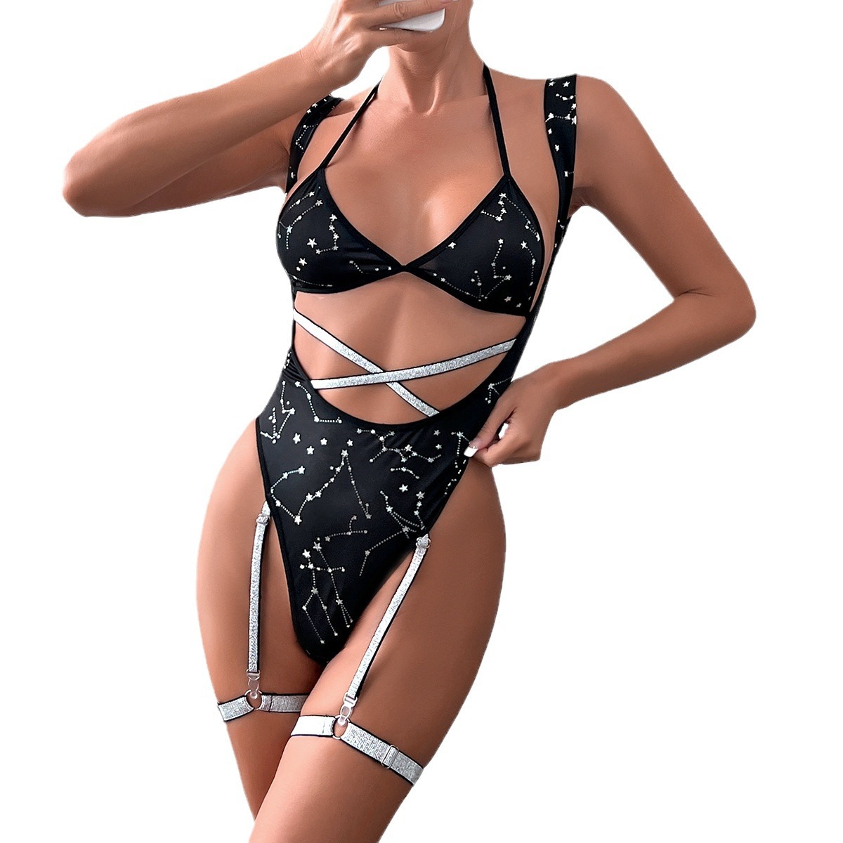 Bunny Girl Cosplay Role-Playing Women’s Dark Silver Flash Hollow-Out Performance Costume Lingerie