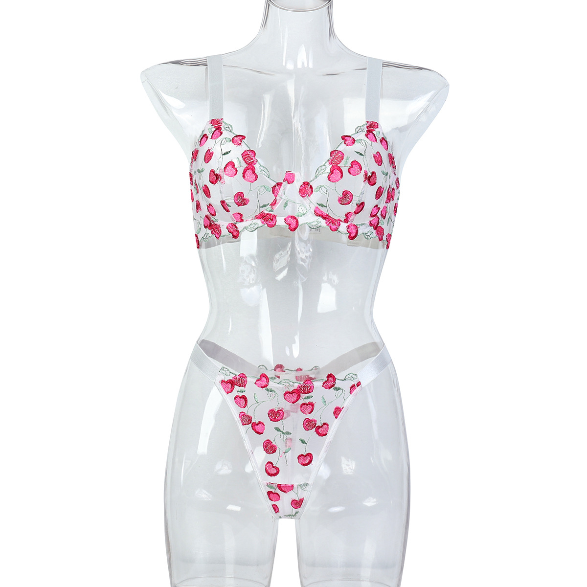 High-quality Cherry Embroidery 3D Jacquard Gathered Bra and Underwear Set for Women