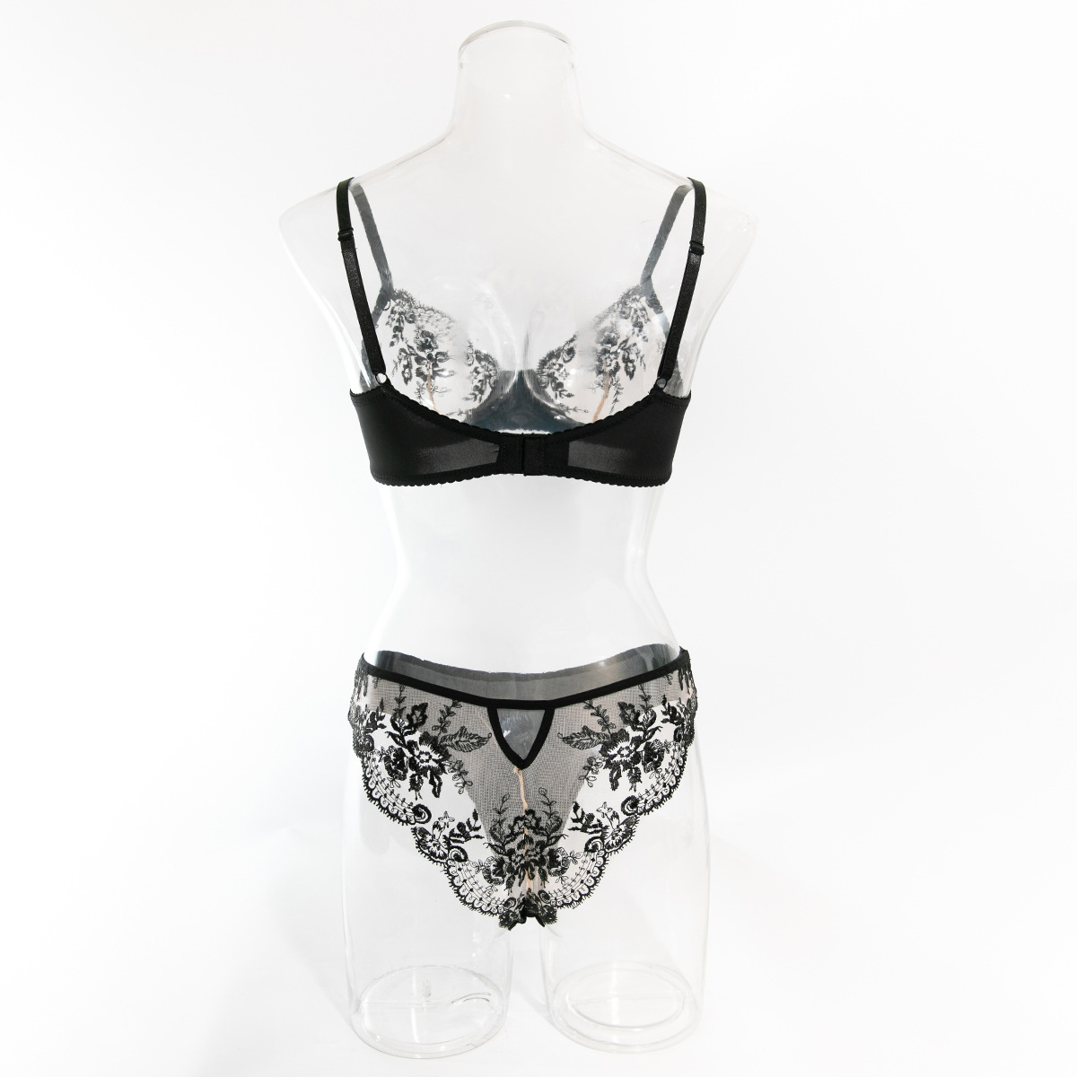 Sexy Embroidered Bra Underwear Ultra-thin Mesh Splicing Large Chest Minimizer Women’s Transparent Underwear Two-piece Set