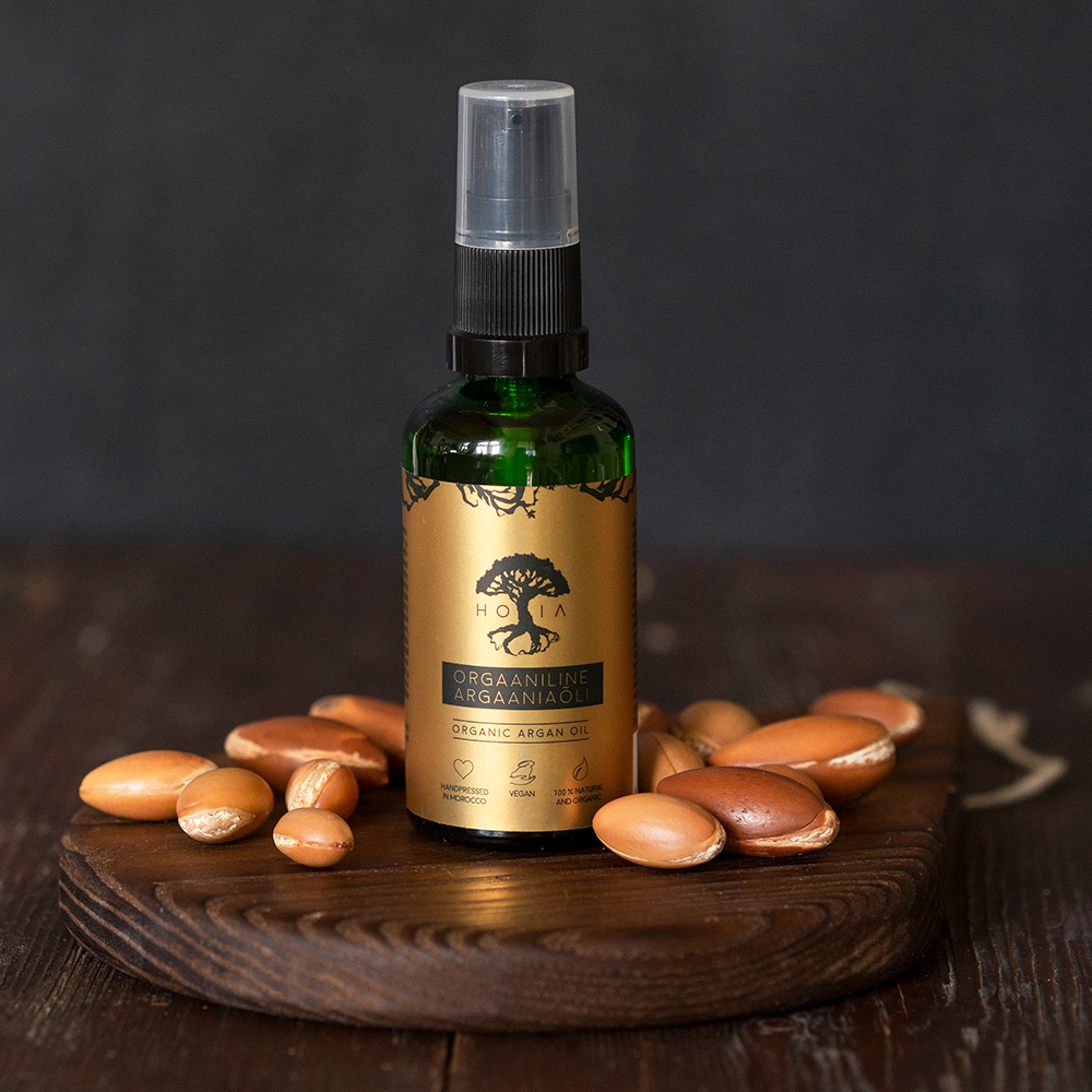 Argania oil is known to be “liquid gold”, in some places the queen of oils and the best natural anti-ageing serum of all times. Organic argan oil is ideal to use on your skin, face, hands and nails, hair and scalp, babies and pregnant women, it is suitable for delicate and sensitive skin. HOIA argan oil is freshly pressed after ordering it, which means that the oil is always fresh and high quality.