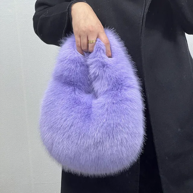 Fashion Soft Plush Half Moon Bags for Women Designer Fluffy Faux Fur Lady Handbags Luxury Small Tote Female Winter Purses
