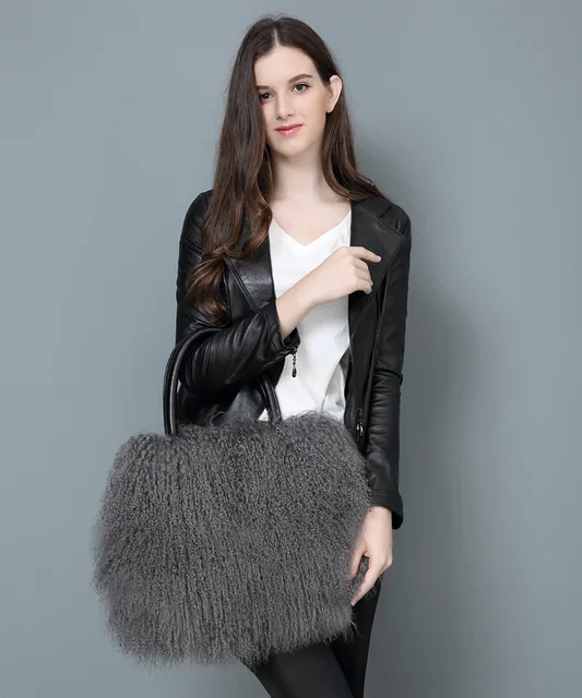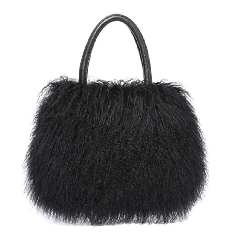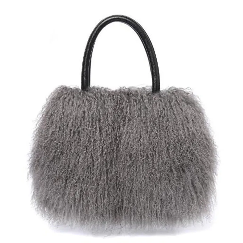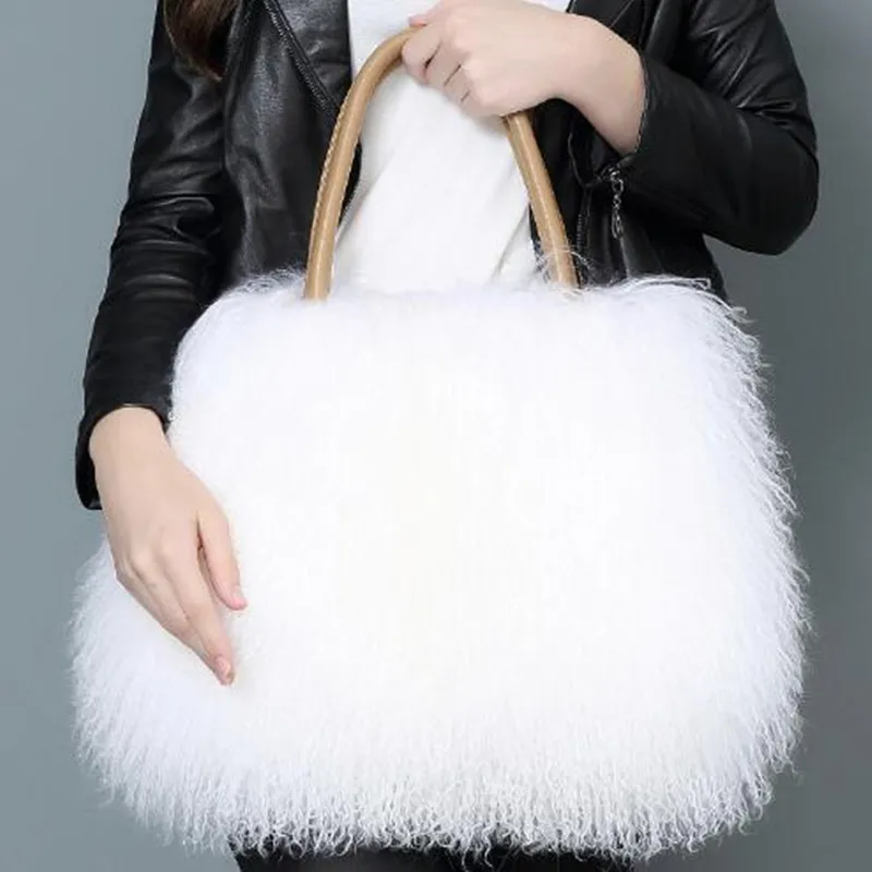 Real Mongolian Fur Bags Australian Beach Wool Fur Shoulder Bag Ladies Tibet Lamb Fur Wrist Bag Large Capacity
