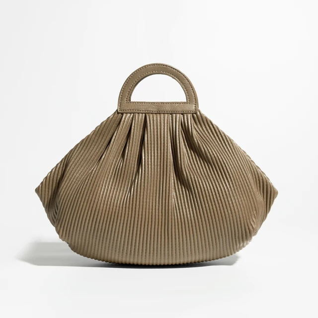 Winter Trend Women Pleated Dumpling Top Handle Purse Ruched Stylish Crossbody Bag Retro Solid Color Hasp Shoulder Handbag