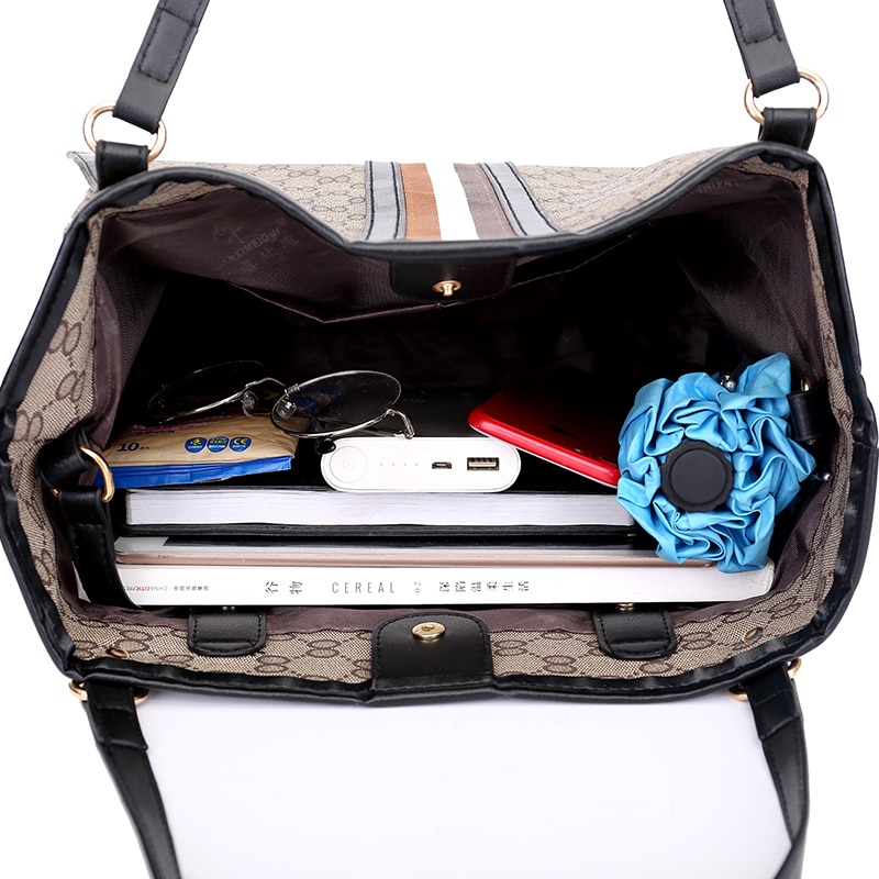 Women’s Handbags Ladies Shoulder Bag PU Fashion Hit Color Printing Bottom Wear-resistant Rivets Large Capacity
