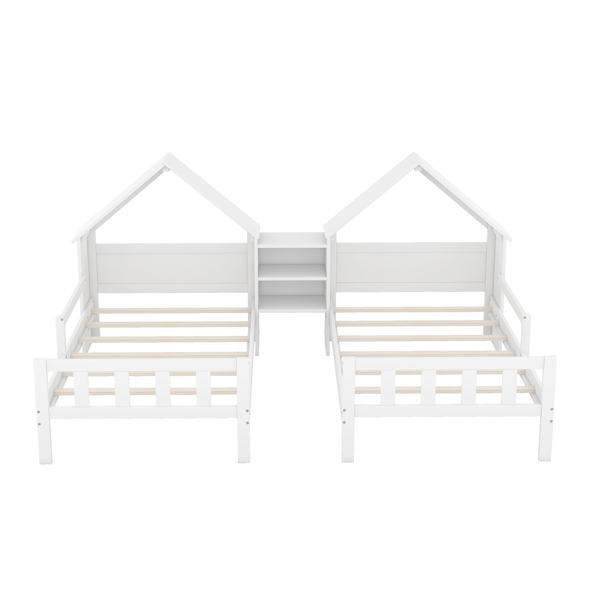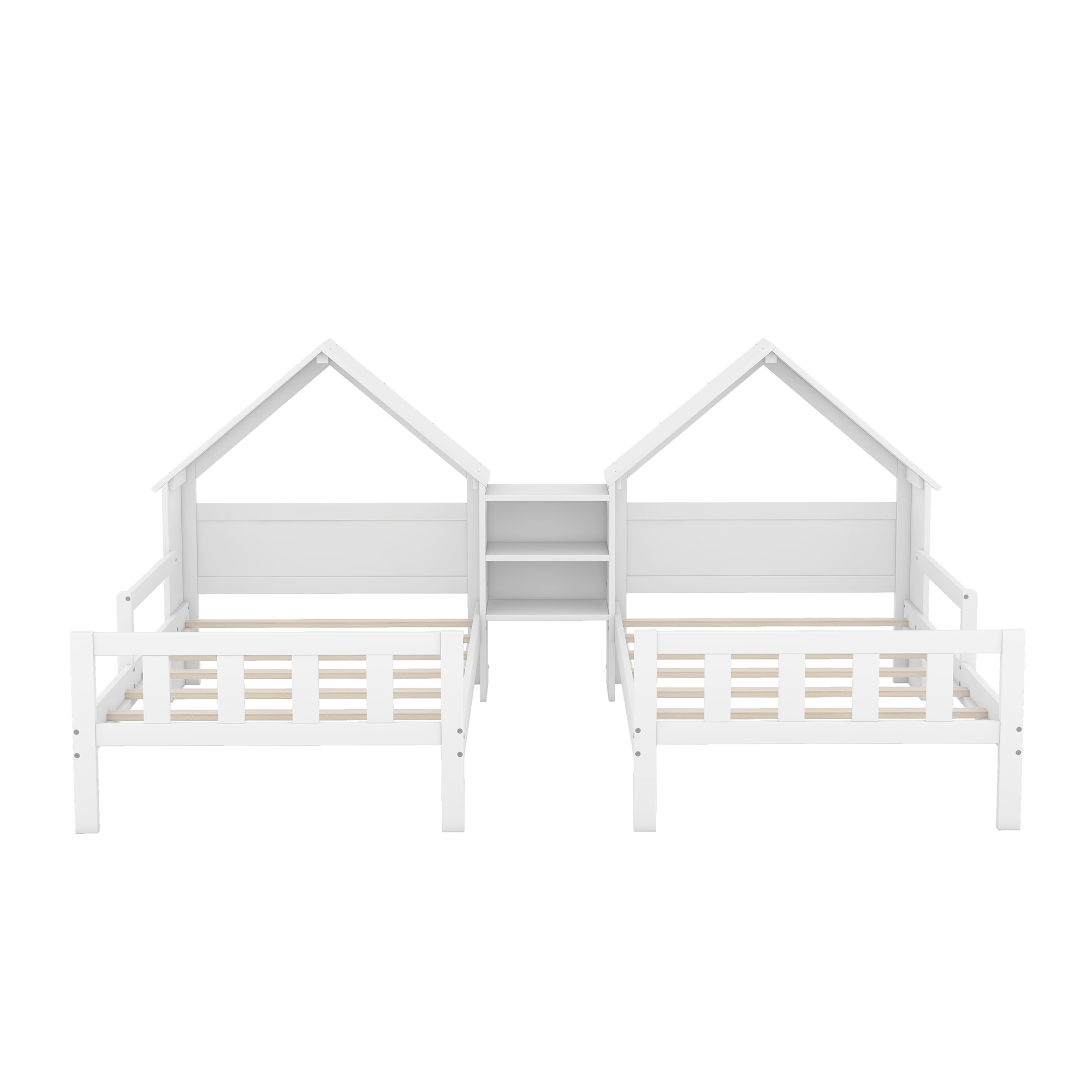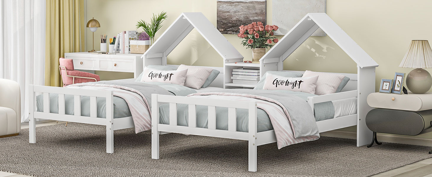 Product Name:Double Twin Size Platform Bed with House-shaped Headboard and a Built-in Nightstand, White