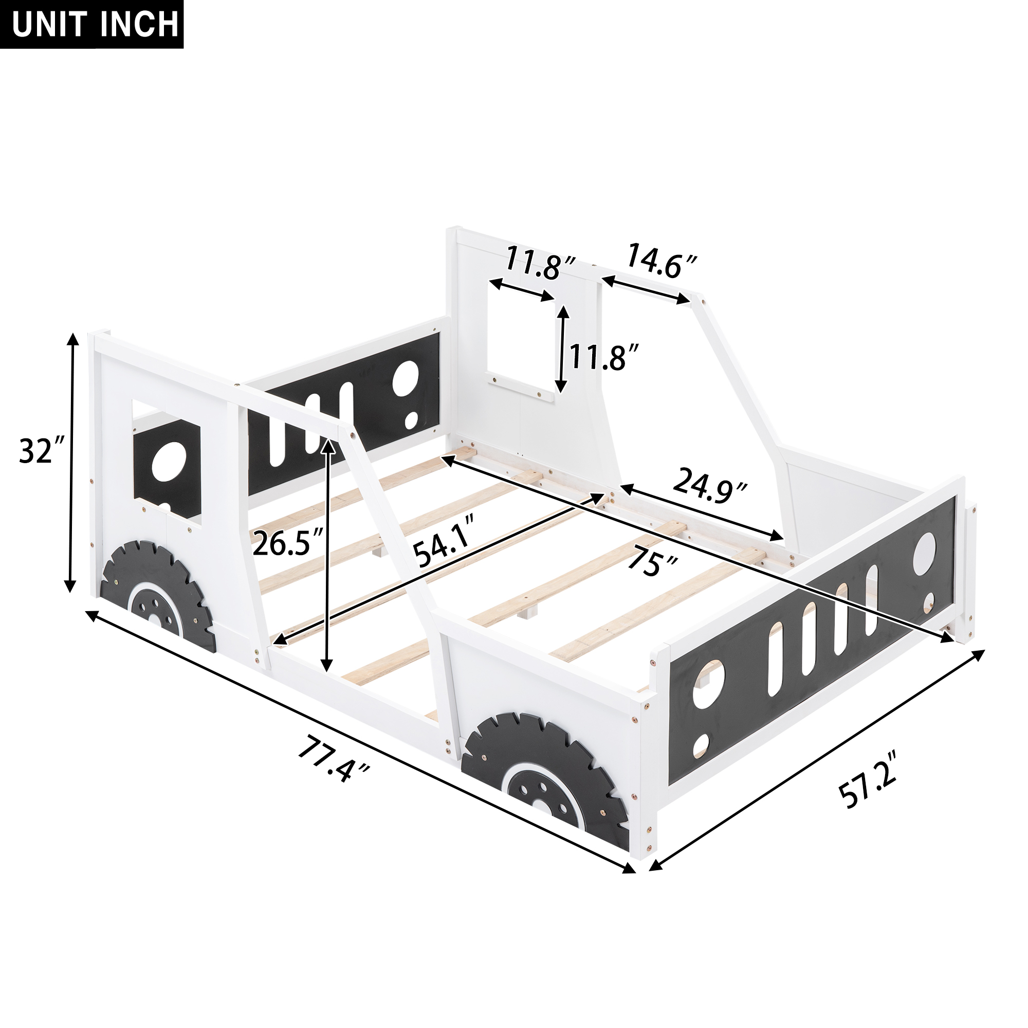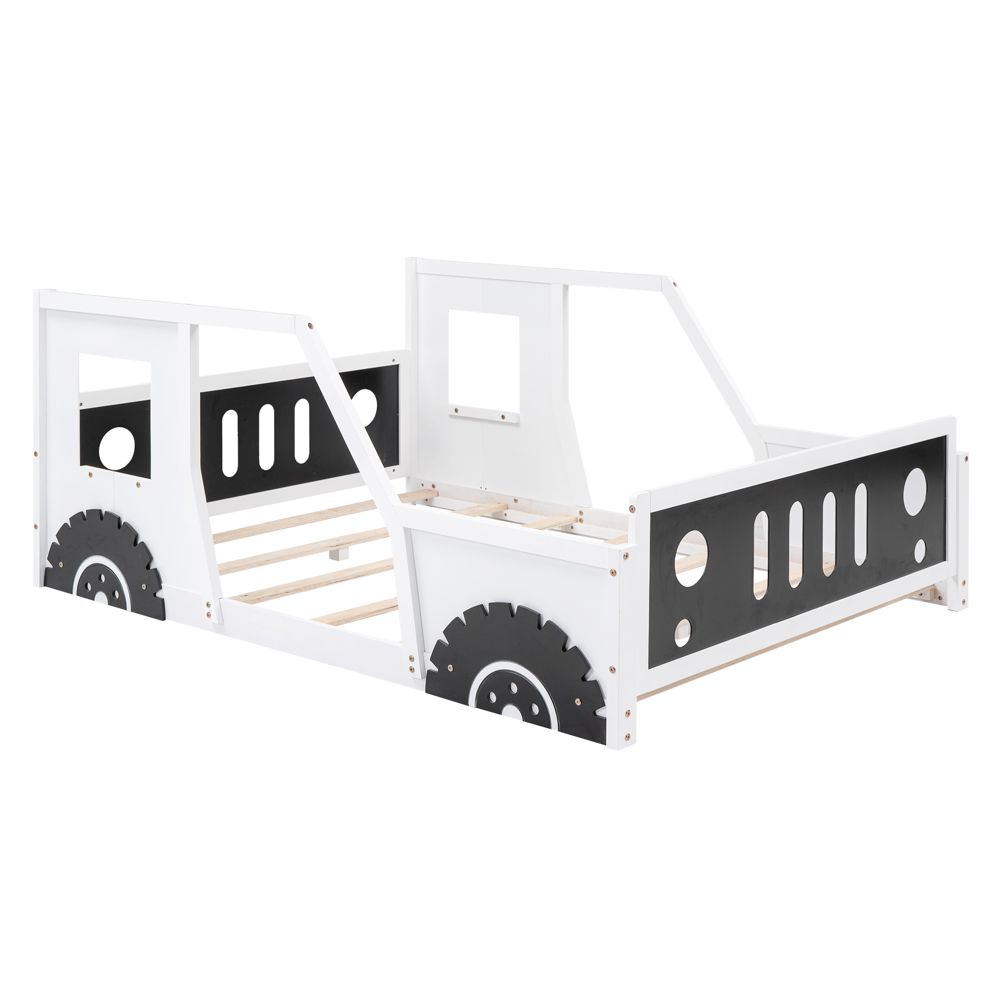 Product Name:Full Size Classic Car-Shaped Platform Bed with Wheels,White