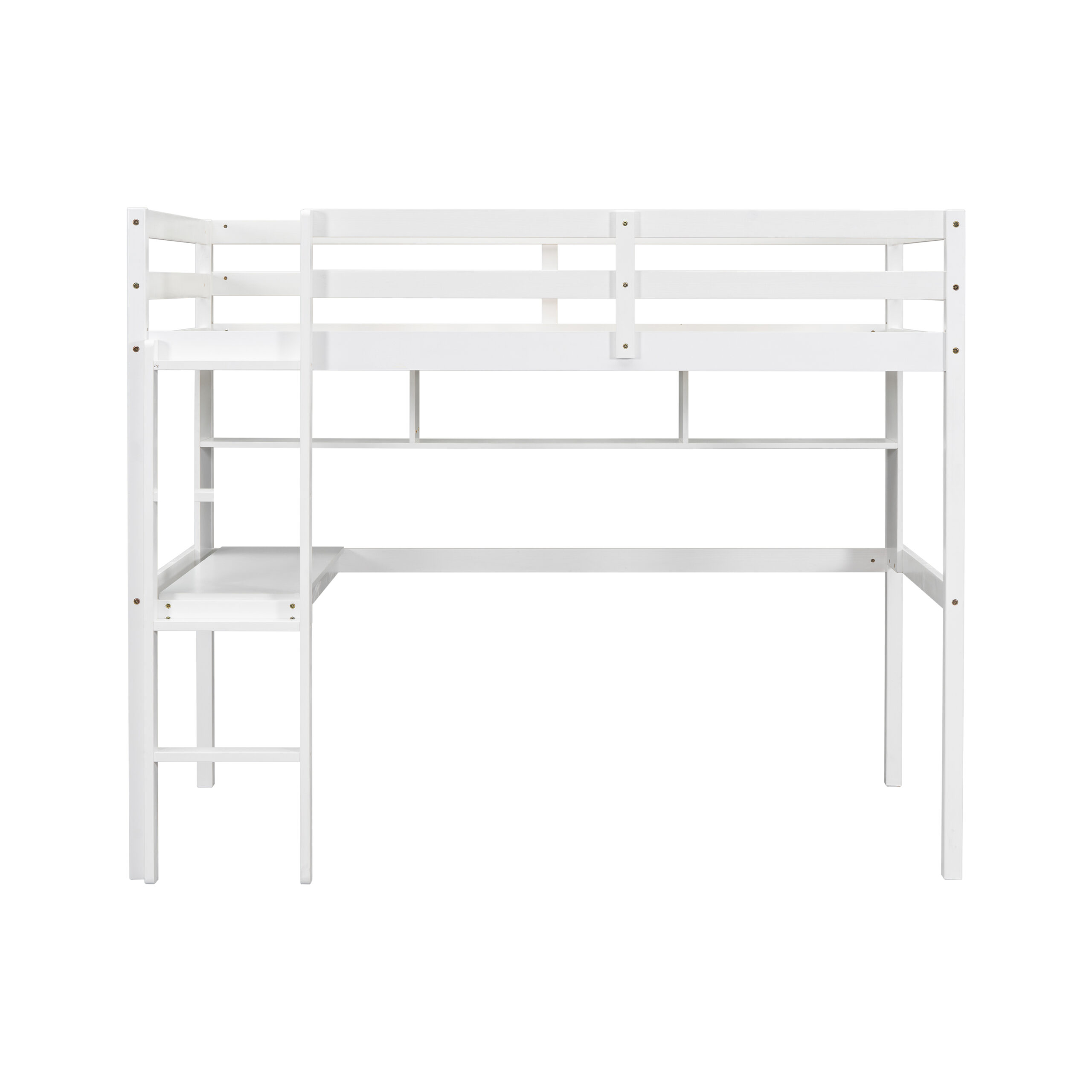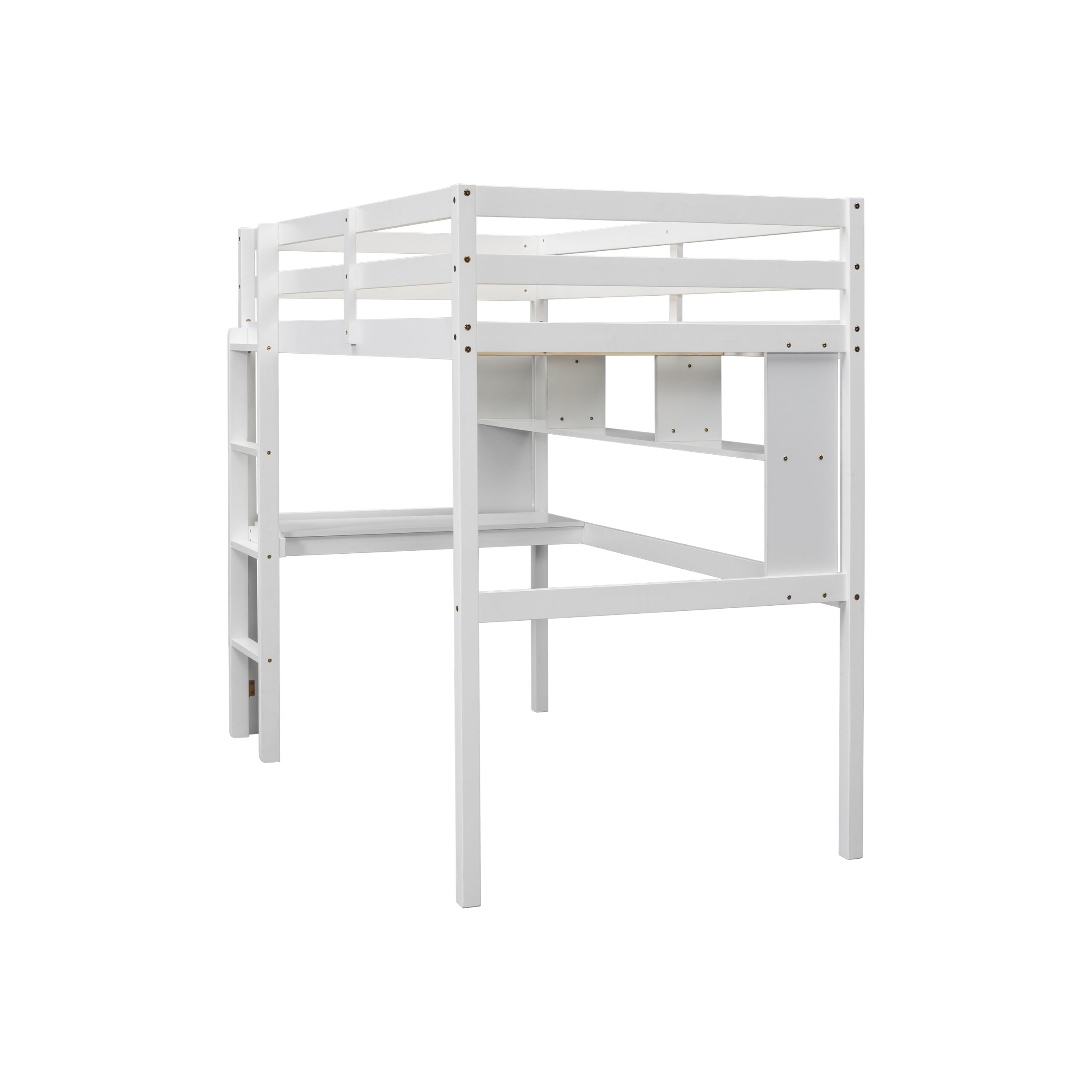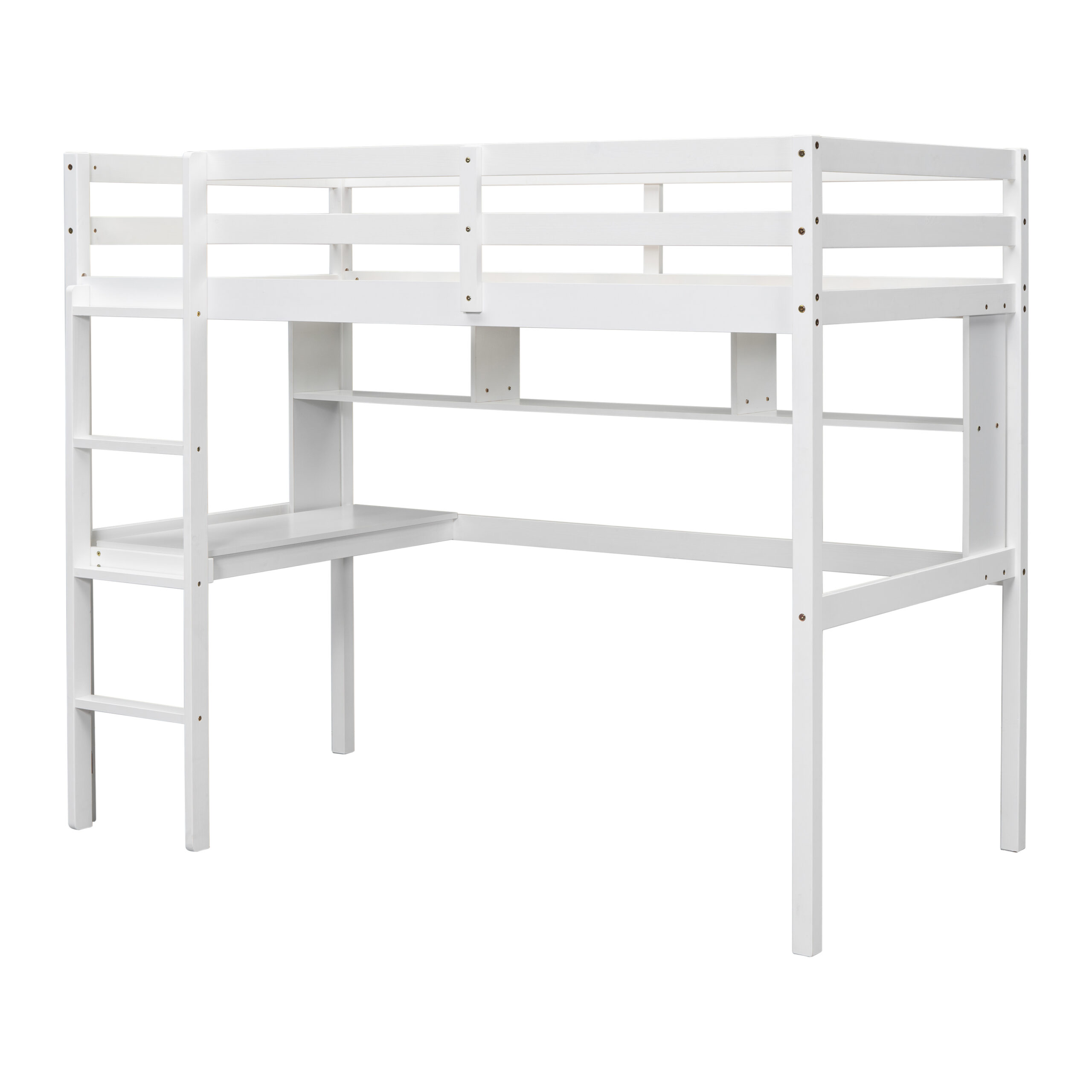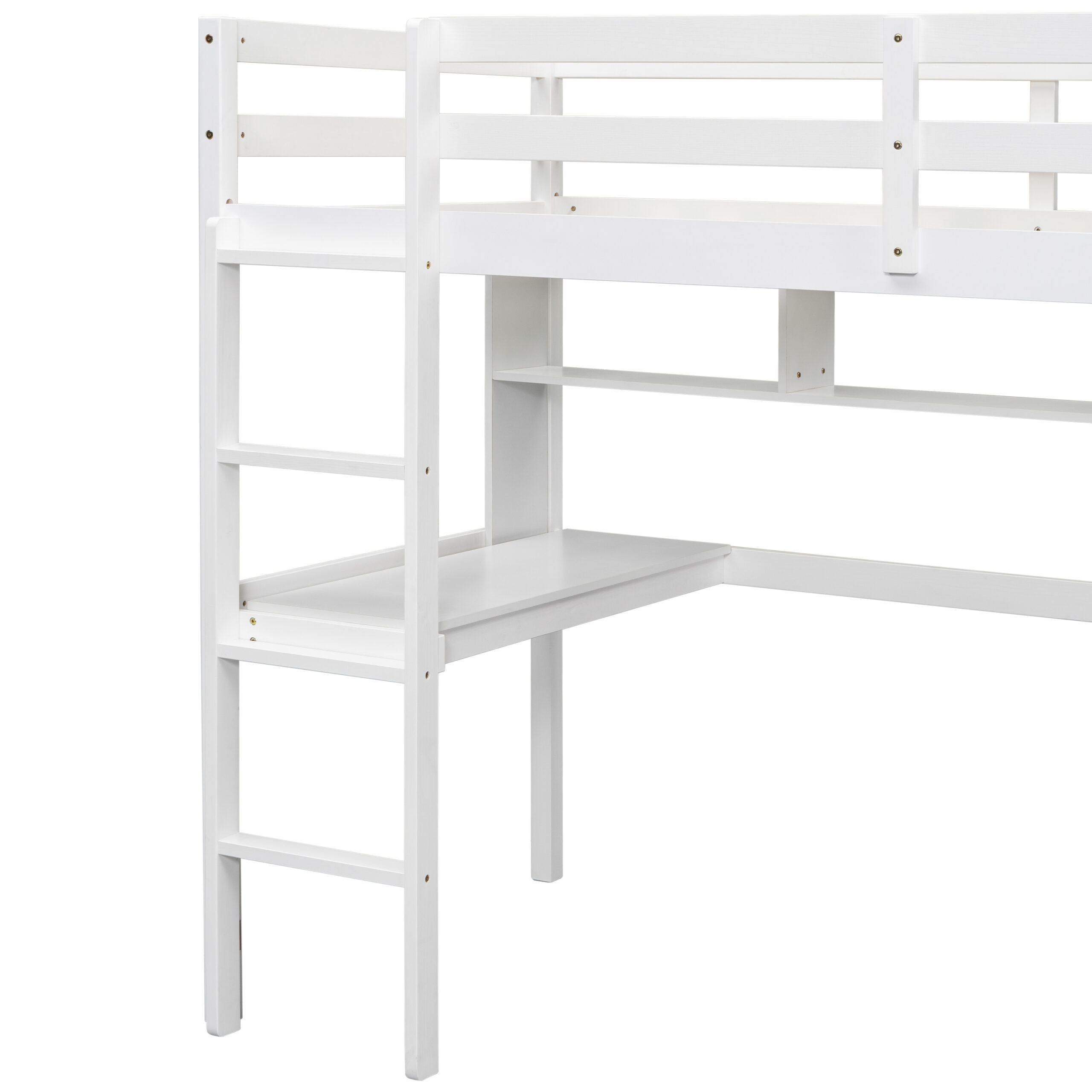Twin Loft Bed with built-in desk and bookcase of three compartments, Guardrails and Ladder,White