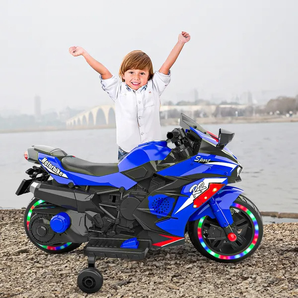 Kids Powered Ride-ons Toy, Kids Motorcycle For 3-6 Years, 12V Electric Ride On Motorcycle With Light Wheel & Bluetooth Music-Blue